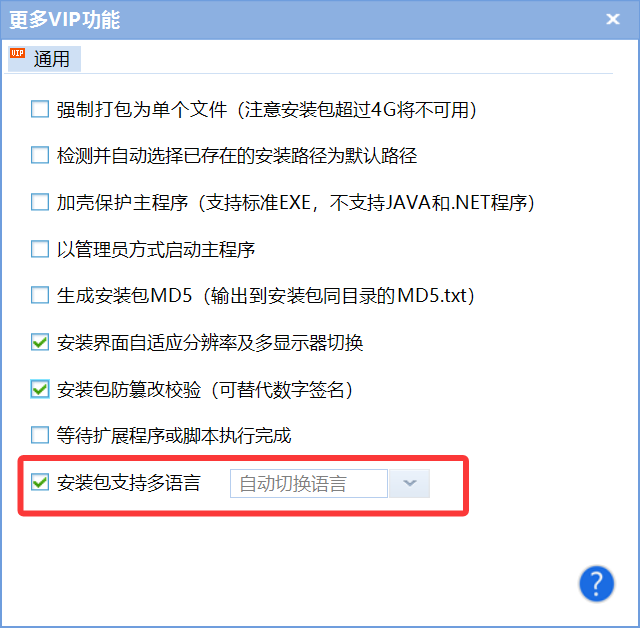 启用多语言支持:更多VIP功能->勾选安装包支持多语言